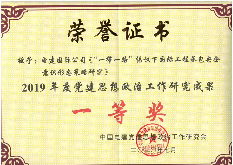 中國電建2019年度黨建思想政治工作課題研究成果一等獎